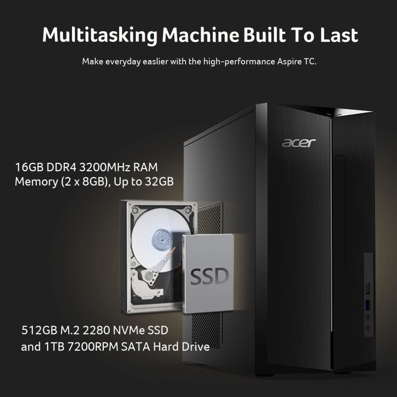 • 16GB 3200MHz DDR4 内存 | 512GB M.2 2280 NVMe SSD | 1TB 7200RPM SATA 硬盘 | 8X DVD-刻录机双层驱动器 (DVD-RW)