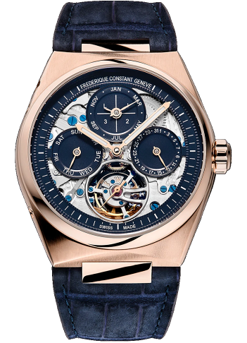 CONSTANT 康斯登-預購商品-HIGHLIFE 限量 陀飛輪萬年曆18K金 機械男腕錶(FC-975N4NH9)-41mm-藍面皮革|指定卡滿5千回饋10%